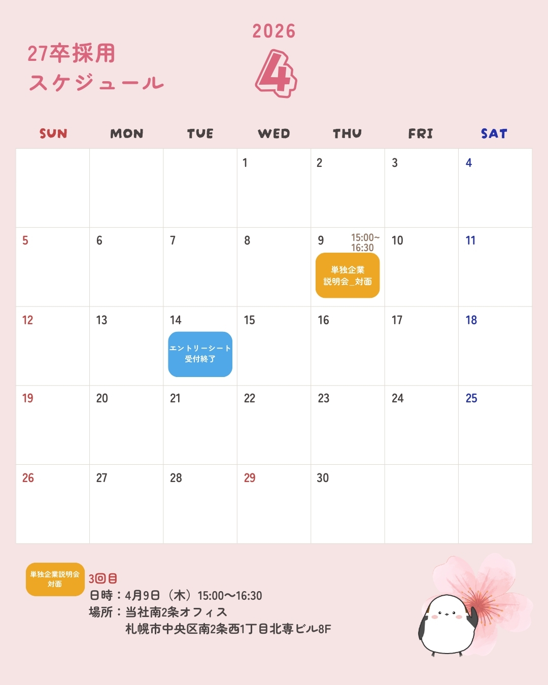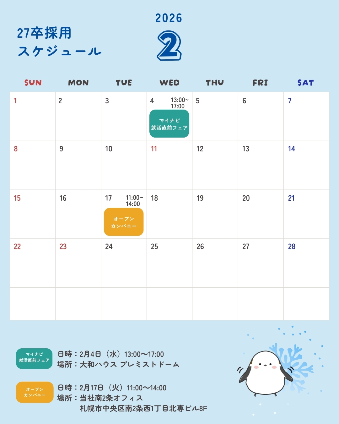 2027卒採用スケジュールのお知らせ