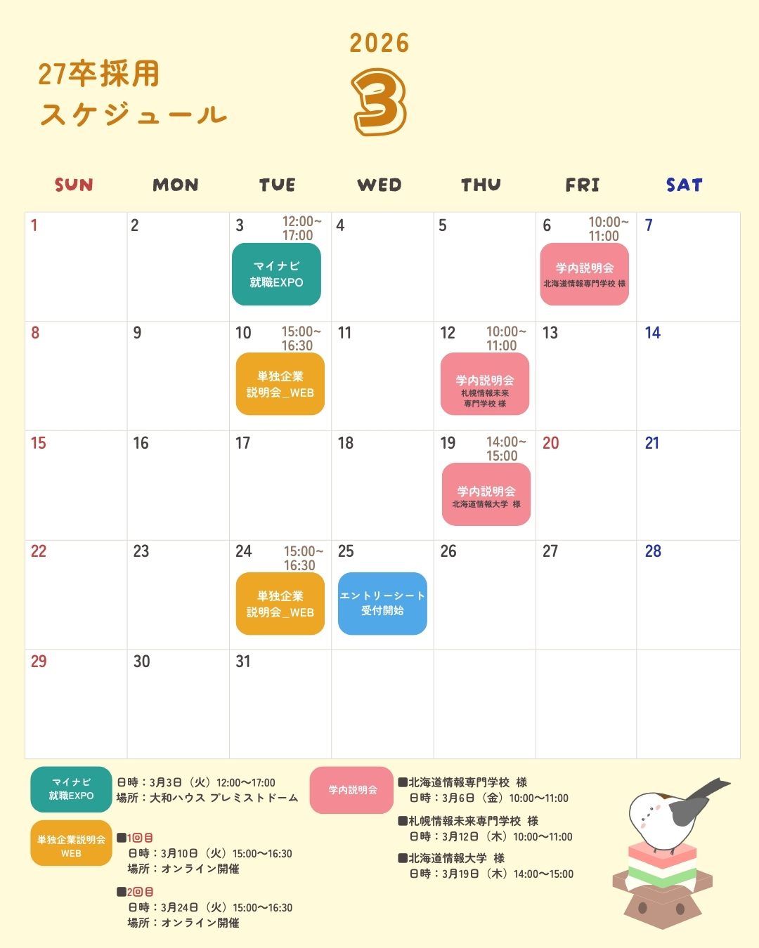 2027卒の学生様に向けた各種採用スケジュールをご案内いたします。
